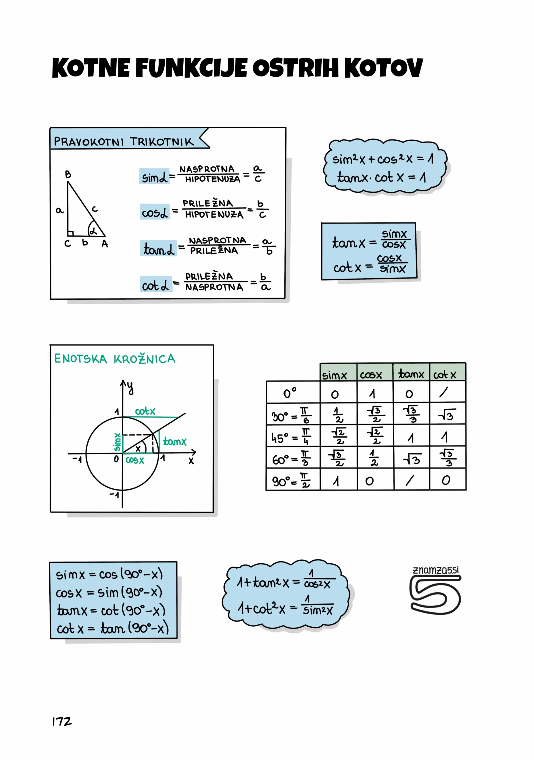 2. KOTNE FUNKCIJE: Kotne funkcije ostrih kotov, Kotne funkcije poljubnih kotov