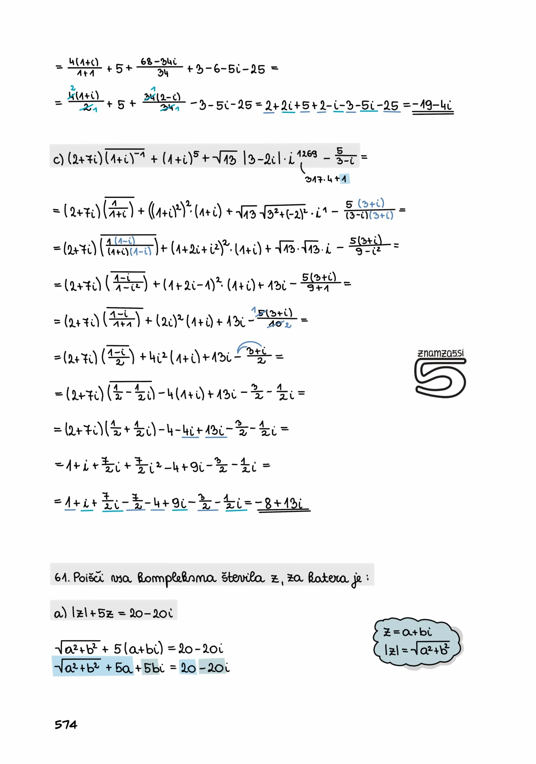 7. KOMPLEKSNA ŠTEVILA: Množica kompleksnih števil, Seštevanje, odštevanje in množenje kompleksnih števil, Konjugiranje, deljenje in absolutna vrednost kompleksnih števil, Kvadratna enačba in kompleksna števila