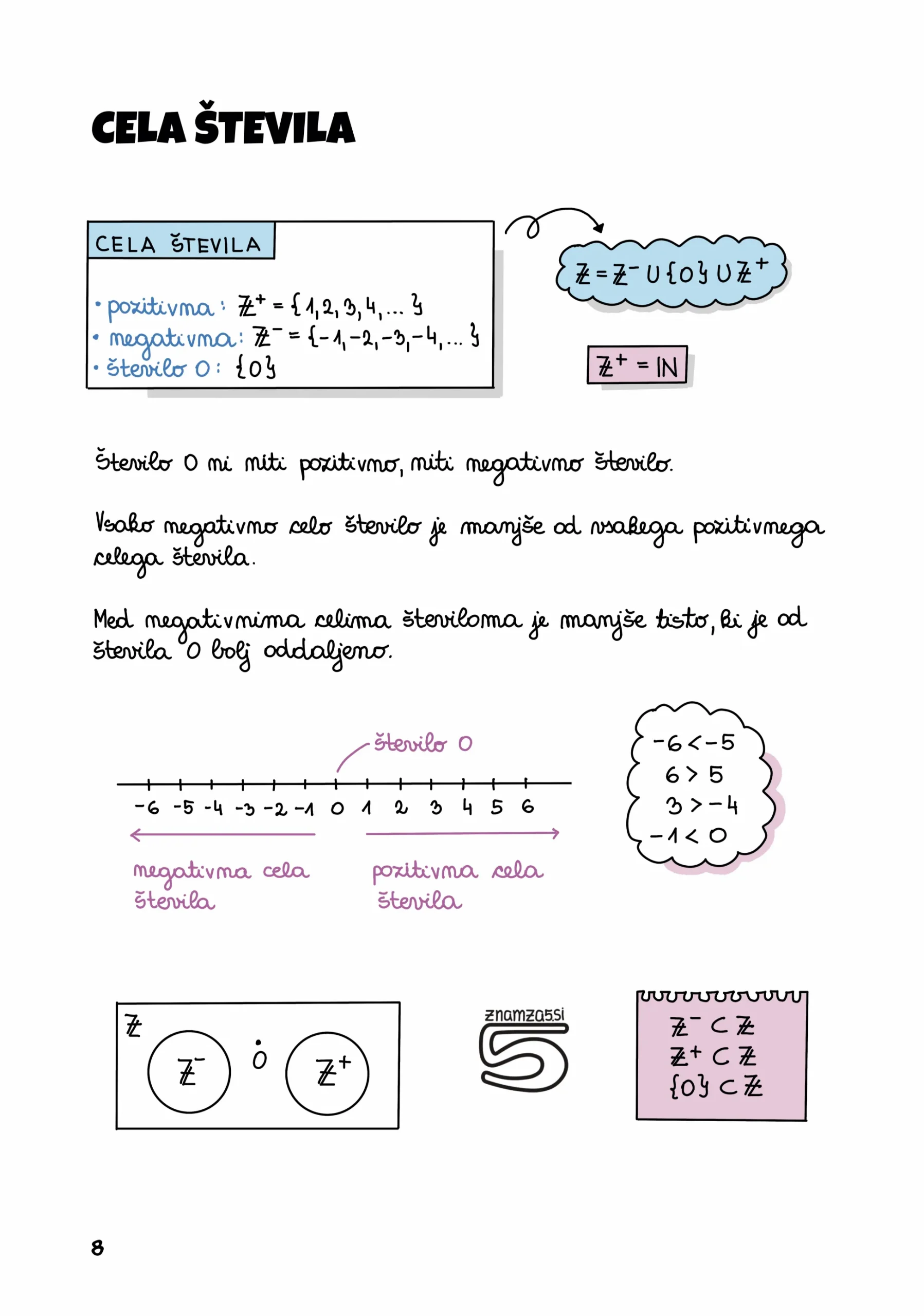 1. RACIONALNA ŠTEVILA: Cela števila, Racionalna števila, Primerjanje in urejanje racionalnih števil, Nasprotna vrednost, Absolutna vrednost